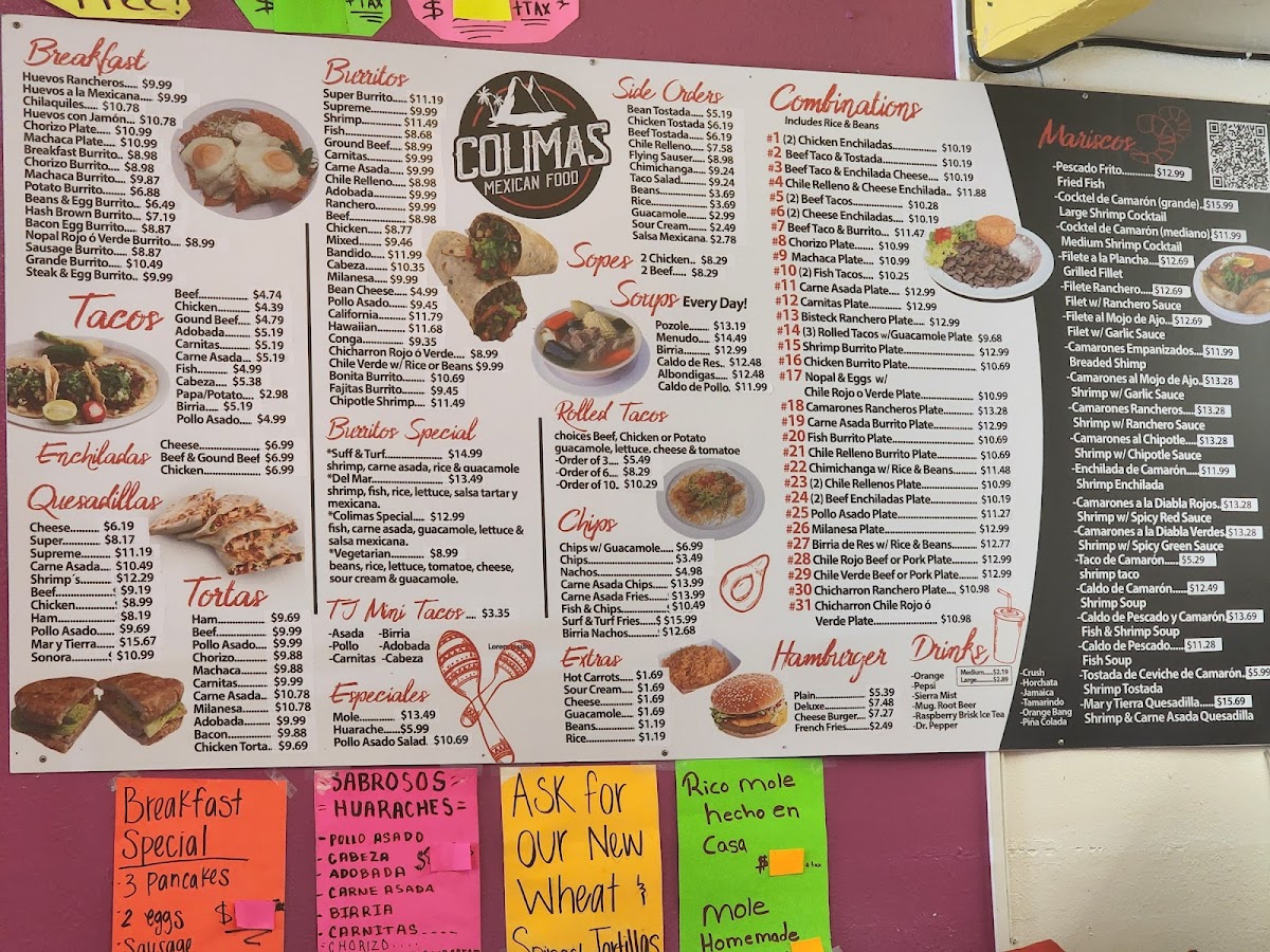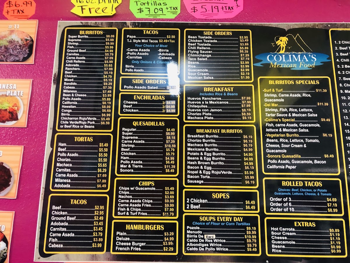 Don’t overlook their tempting extras, including Shrimp, Chorizo, and the infamous Hot Carrots that should not be missed! Each dish reflects a commitment to quality and flavor, making Colima's a must-visit for both locals and visitors alike.