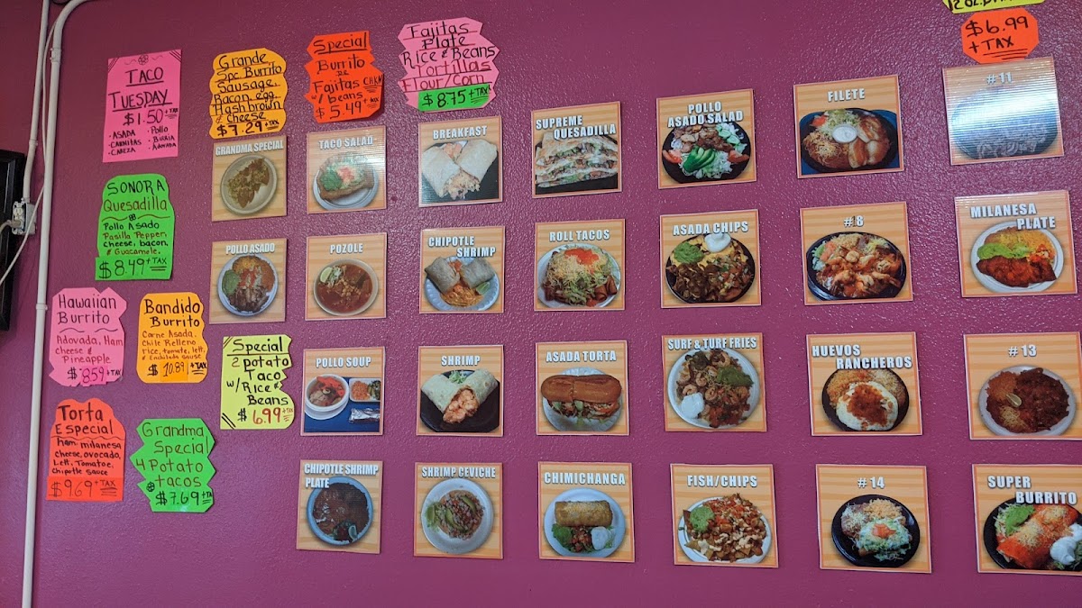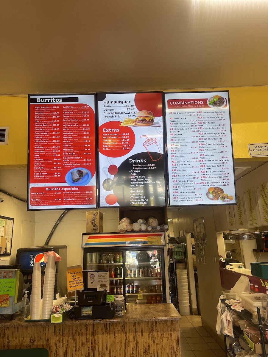 The menu is a vibrant tapestry of flavors, featuring scrumptious options like Carne Asada and Chimichangas loaded with beef, all complemented by generous portions of rice, beans, and refreshing guacamole. For those seeking comfort food, hearty soups like Albondigas and Menudo are equally inviting, served with a choice of tortillas.